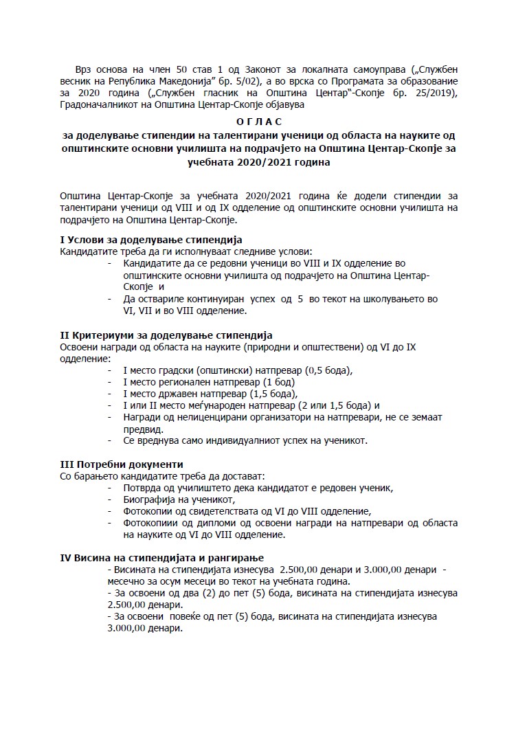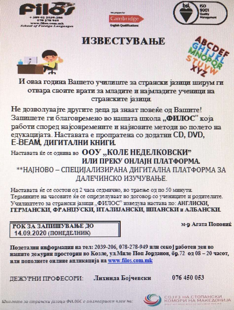 ИЗВЕСТУВАЊЕ ЗА УЧЕНИЦИТЕ И РОДИТЕЛИТЕ