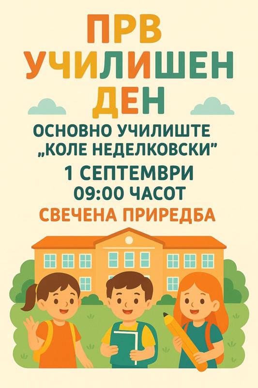 Известување за првиот училиштен ден за првачињата во ООУ „Коле Неделковски“