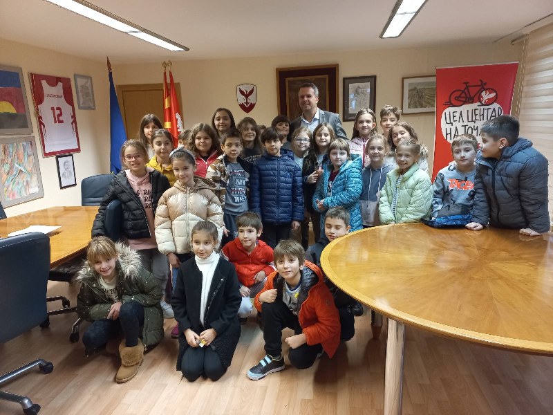 Посета на кабинетот на Градоначалникот на Општина Центар од страна на учениците од 4-в одд.
