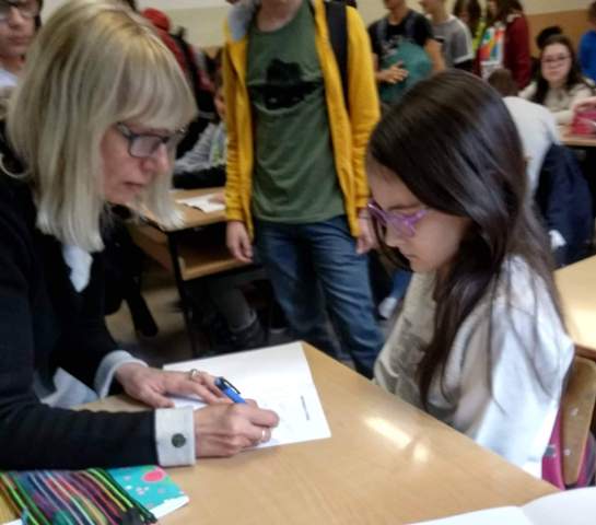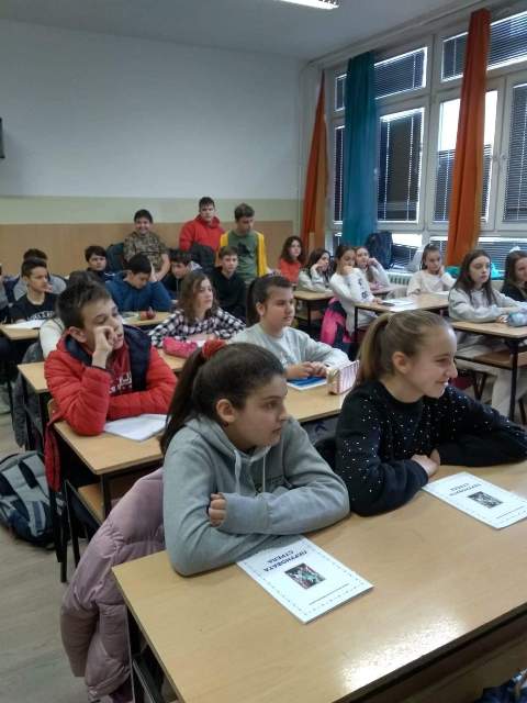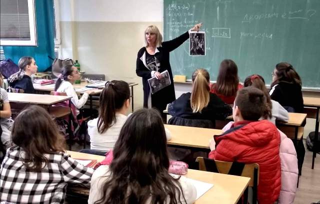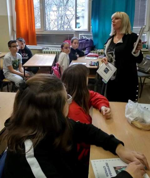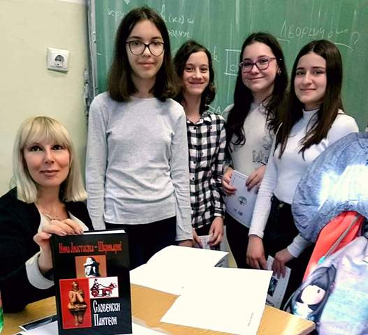 2020-02-21 19:49:10Учениците од 7-а, 7-б и 7-в одд. од ООУ „Коле Неделковски“ - Општина Центар, Скопје, имаа чест часовите по македонски јазик заедно со наставничките по македонски јазик Еуридика Глигорова Гоља и Радмила Илиева Стојановска да ги поминат со писателката на лектирата „ Перуновата стрела“ - Нина Анастасова Шкрињариќ. Писателката е редовен професор на Катедрата за македонска книжевност и јужнословенски книжевности на Филолошкиот факултет „Блаже Конески “ во Скопје, каде ја изведува наставата по предметите: Митопоетика, Словенска митологија, Македонска народна книжевност (Македонска народна поезија и Македонска народна проза) и Психоаналитички концепти во фолклорот.