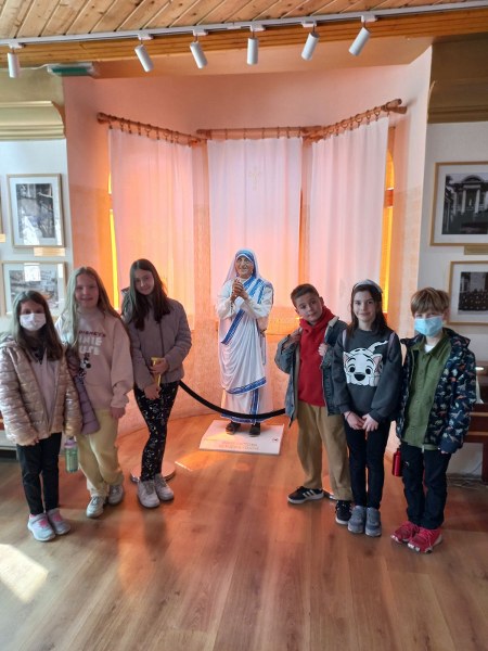 2022-05-10 14:24:07На 06.05.2022 год. учениците од IVа заедно со одделенските наставници Ана Блажевска Анчевска и Христина Ристеска ја посетија Спомен куќата на Мајка Тереза, една од најпознатите хуманитарки и добитнички на Нобелова награда.