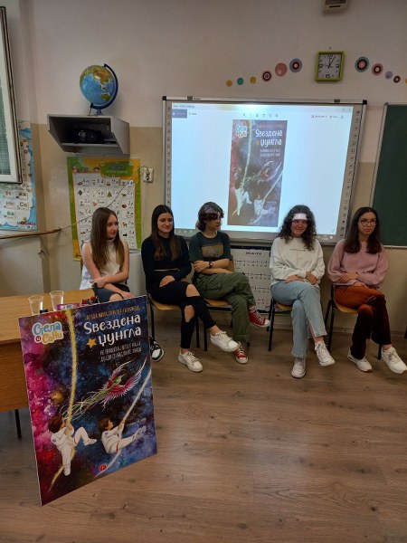 2022-05-13 17:31:05На 12.05.2022г. во IIIв одд. и во IVa одд. гостуваше македонската писателка Јагода Михајловска - Георгиева заедно со нејзиниот издавачки тим и ја промовираше нејзината најнова книга "Ѕвездена џунгла".