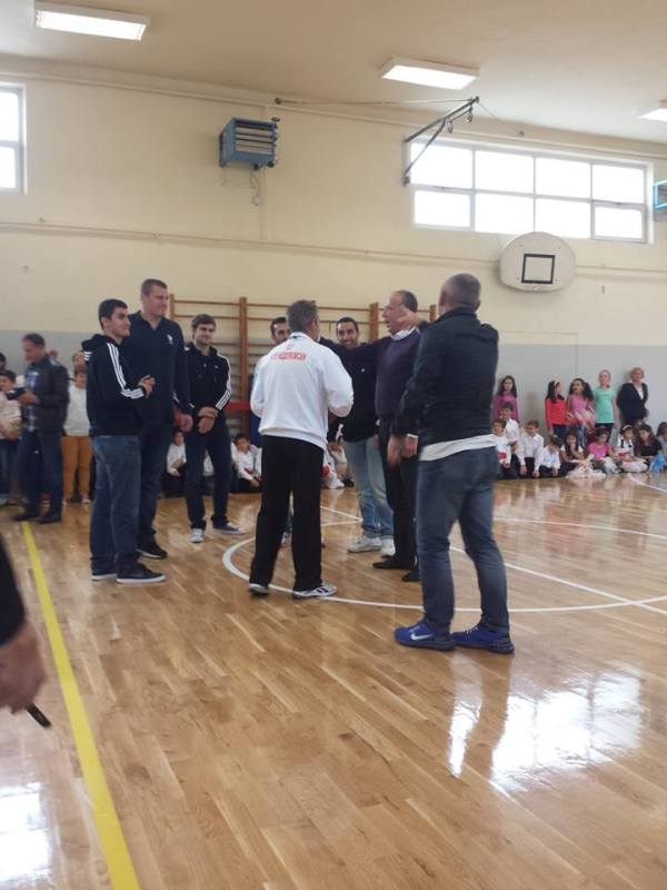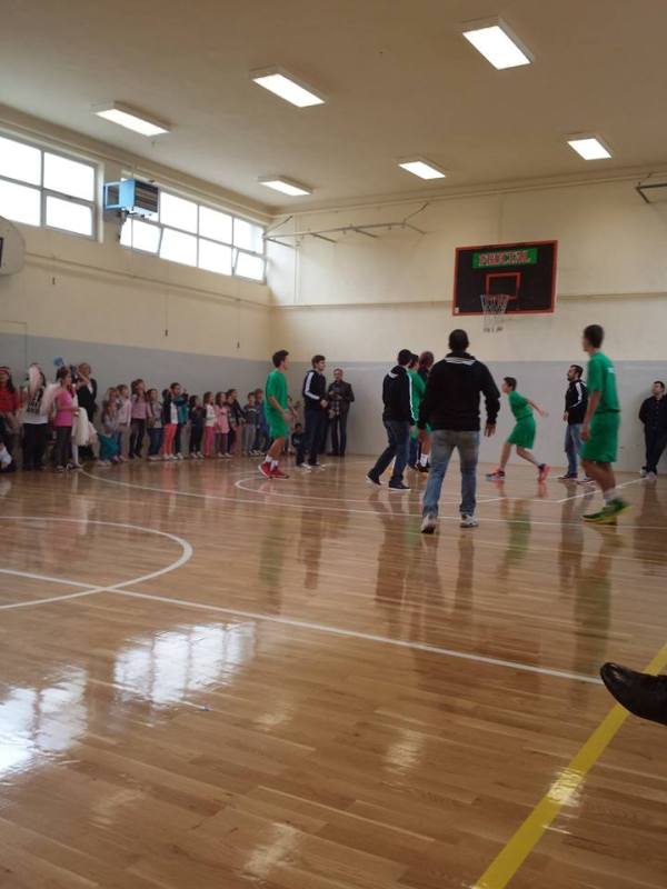 Учениците не го криеа задоволството и на паркетот ги "одмерија" силите со играчите на КК Работнички.