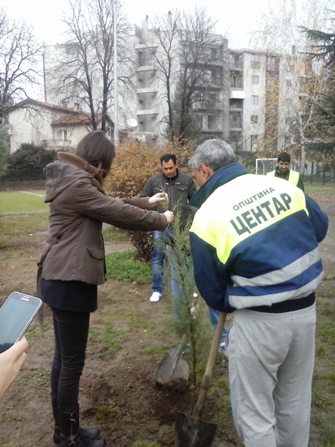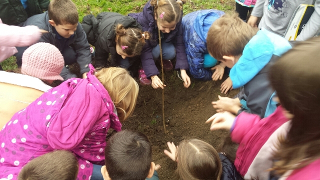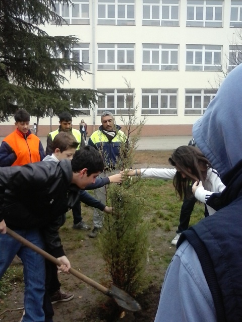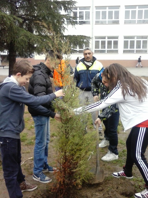 Садиме дрва во училишниот двор.