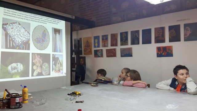 Потоа учениците ја посетија и изложбата со дела во мозаик, во Чифте-амам.Нашите деца беа фасцинирани од оваа техника на ликовно изразување.