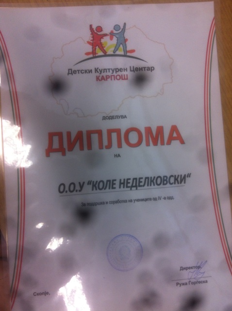 2017-05-09 22:25:16На 26 април во Домот на АРМ се одржа целовечерен концерт на „Детски Културен Центар - Карпош“ во кој учество зедоа група ученици од 4-а одд. кои се негови редовни членови.