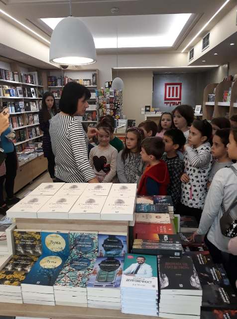 2018-11-05 21:39:26На ден 01.11.2018 (четврток) учениците од II-в одделение ја посетија книжарницата „Три“.Во рамките на посетата разговараа со писателката Виолета Танчева - Златева која им ја пренесе љубовта кон книгите.Учениците се запознаа и разгледаа интересни книги,сликовници и енциклопедии за нивната возраст.