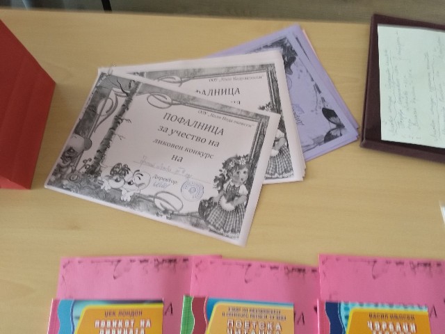 2019-05-01 14:33:26По повод патрониот празник на училиштето учениците од ООУ „Коле Неделковски“ , општина Центар, Скопје, учествуваа на литературно читање и имаа средба со писателот Трајче Кацаров. Средбата се одржа во просториите на Библиотеката „Браќа Миладиновци“. Исто така по повод патрониот празник училиштето објави интерен литературен и ликовен награден конкурс на слободна тема. На ден 24.04.2019 год. во ООУ „Коле Неделковски“ се одржа читање на наградените литературни творби и претставени беа наградените ликовни творби. Наградените ученици ги добија своите заслужени дипломи и награди.